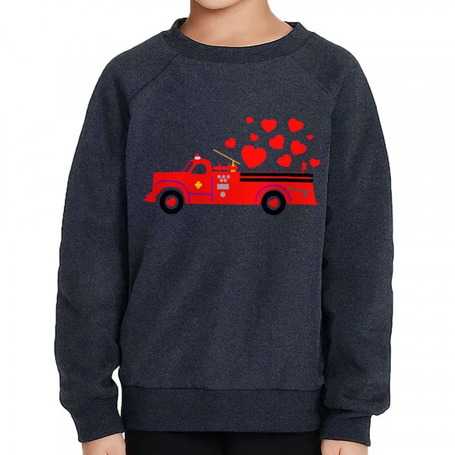 Firetruck Valentines Toddler Raglan Sweatshirt keeps toddlers warm with comfort and style. We focus on soft cotton, safe fabric, and design. The collection abides by the belief that kids should always be comfortable, snuggly, and safe, free to do what they do best: play, sleep and thrive.