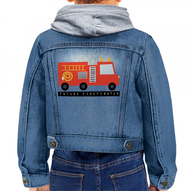 Future Firefighter Firetruck Toddler Hooded Denim Jacket
