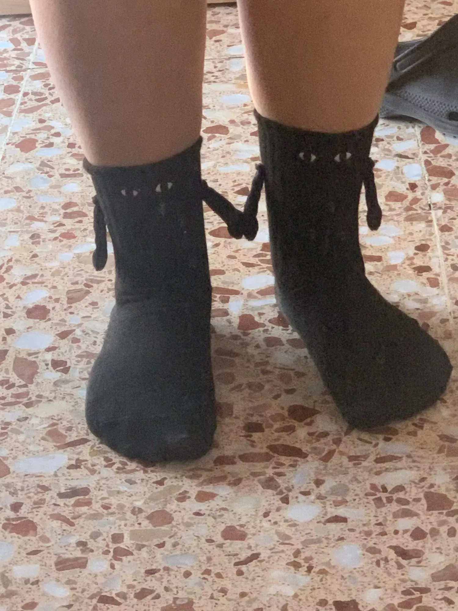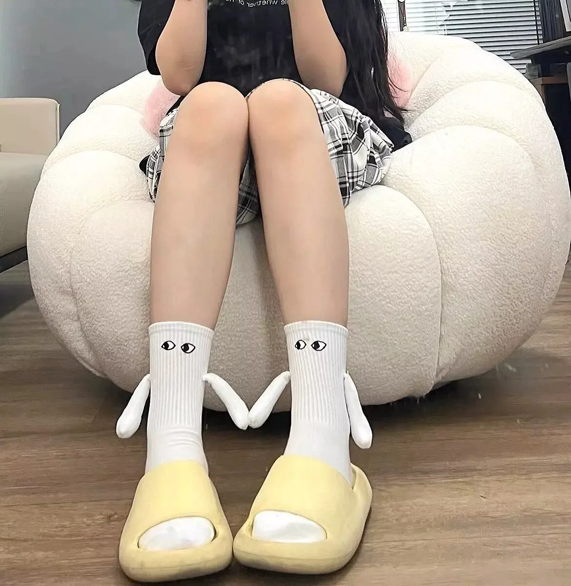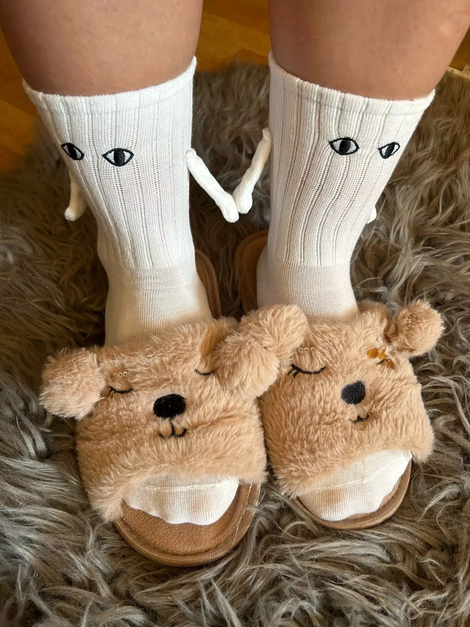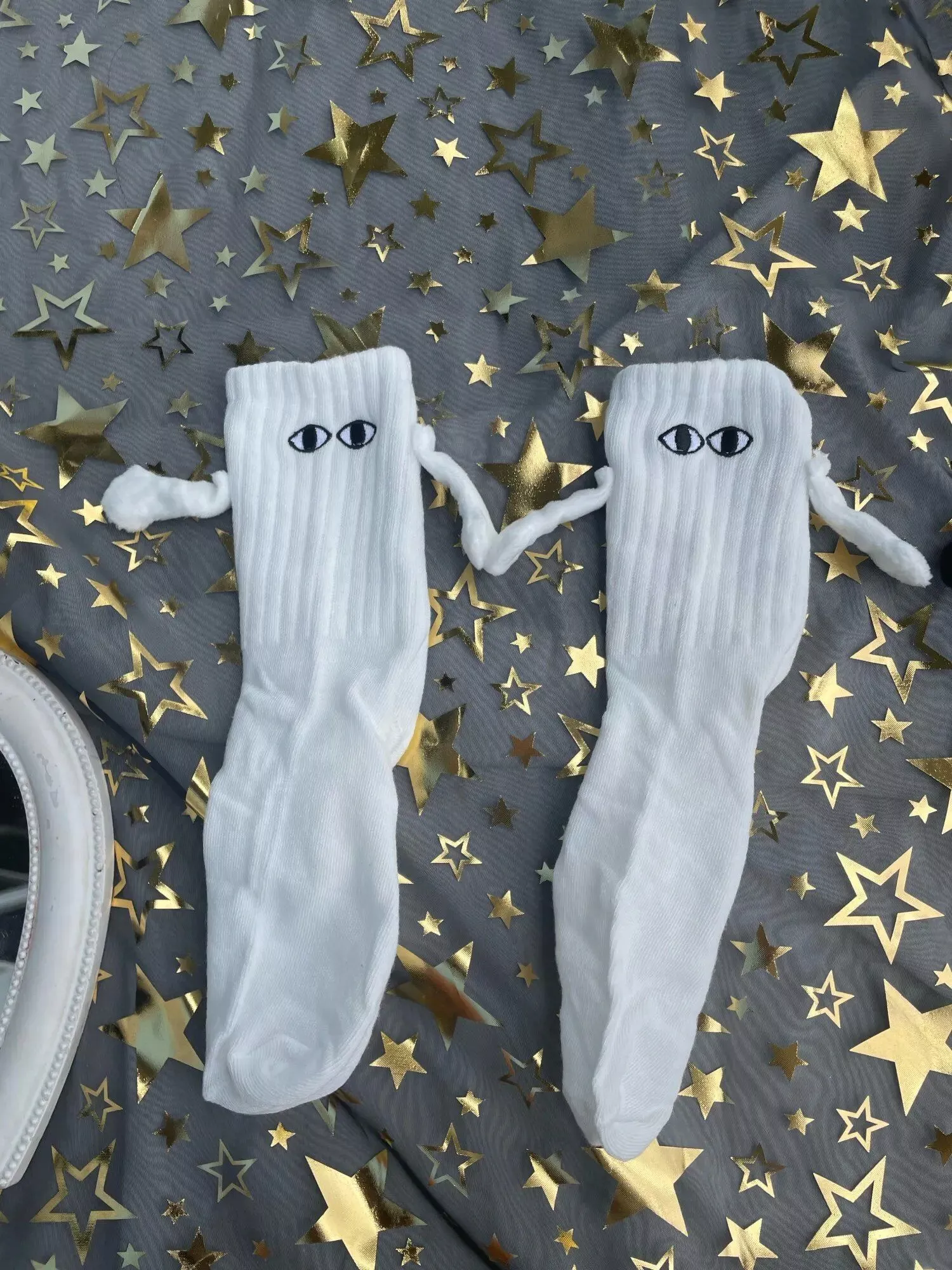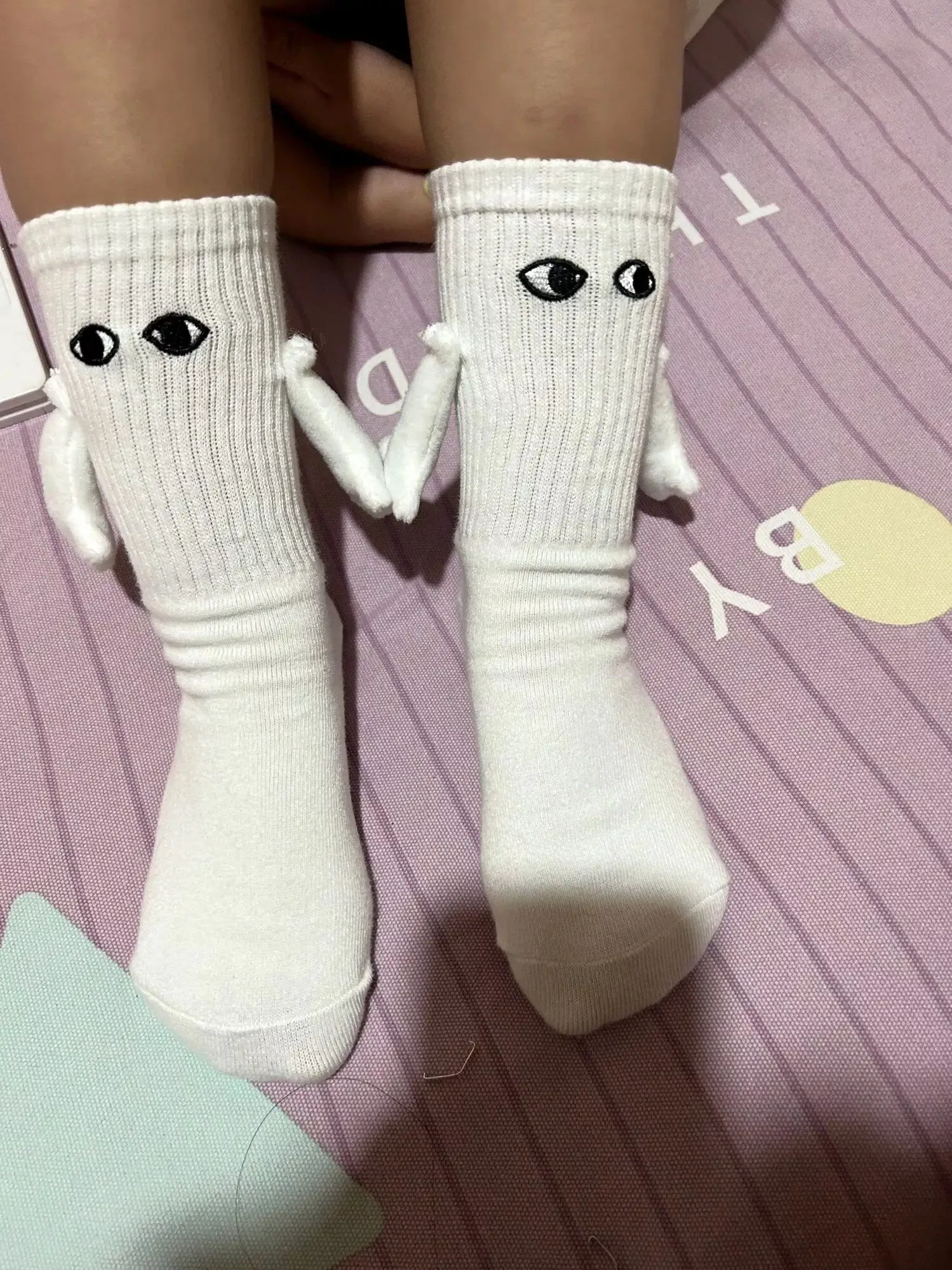 Made of super soft and comfortable material, these socks are undeniably adorable. The quality is top-notch, and the hand-holding feature adds an extra level of charm. I highly recommend them!