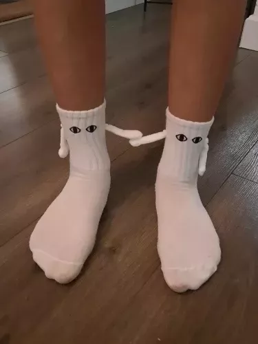 Bought as a gift for my best friend and me, these socks are simply adorable! Even after washing, they continue to magnetically connect perfectly. Additionally, they're made of very soft material.