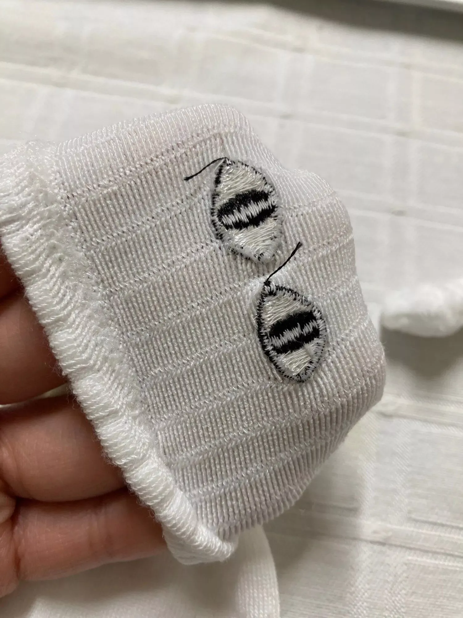 They are very beautiful, the fabric is thin but not of poor quality and the truth is the eyes are very well embroidered and the hands are also :)