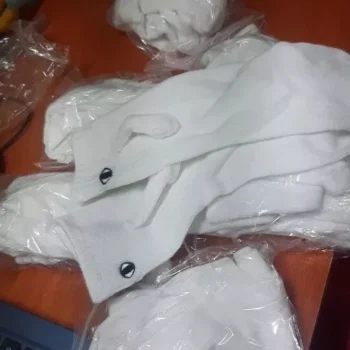 The product arrived well, the fabric is soft and thin. Has a magnet in each hand and they hit well. They look cute