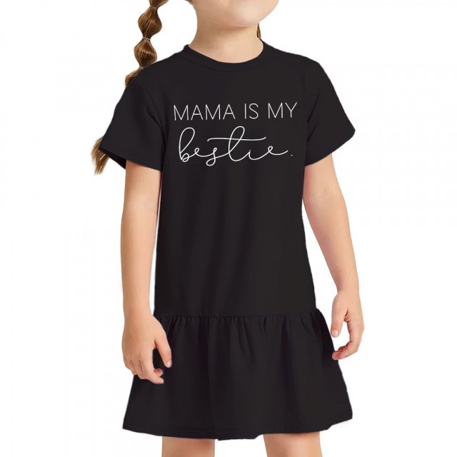 Mama Is My Bestie Girls’ Ruffle Neck T-Shirt features breathability and lightweight fabric, which is not easy to wrinkle and deform, and the fabric is soft and skin-friendly, which can better protect the delicate skin of children, bringing a more comfortable experience.