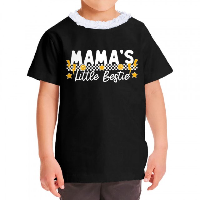 Mama’s Little Bestie Girls’ Ruffle Neck T-Shirt