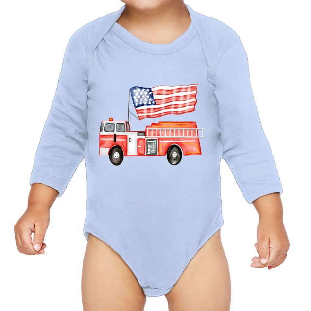 USA Firetruck Baby Long Sleeve Onesie – Truck Clothing – Firetruck Lover Stuff