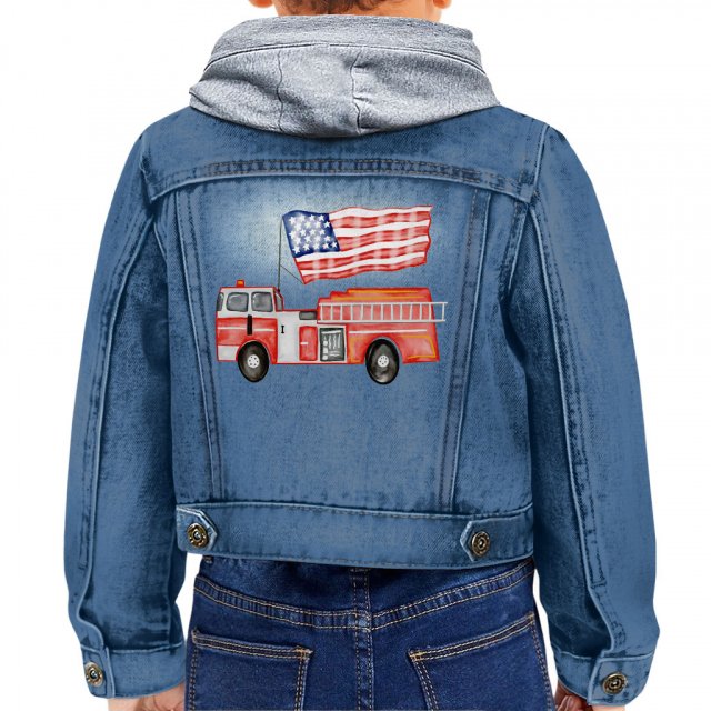 USA Firetruck Toddler Hooded Denim Jacket